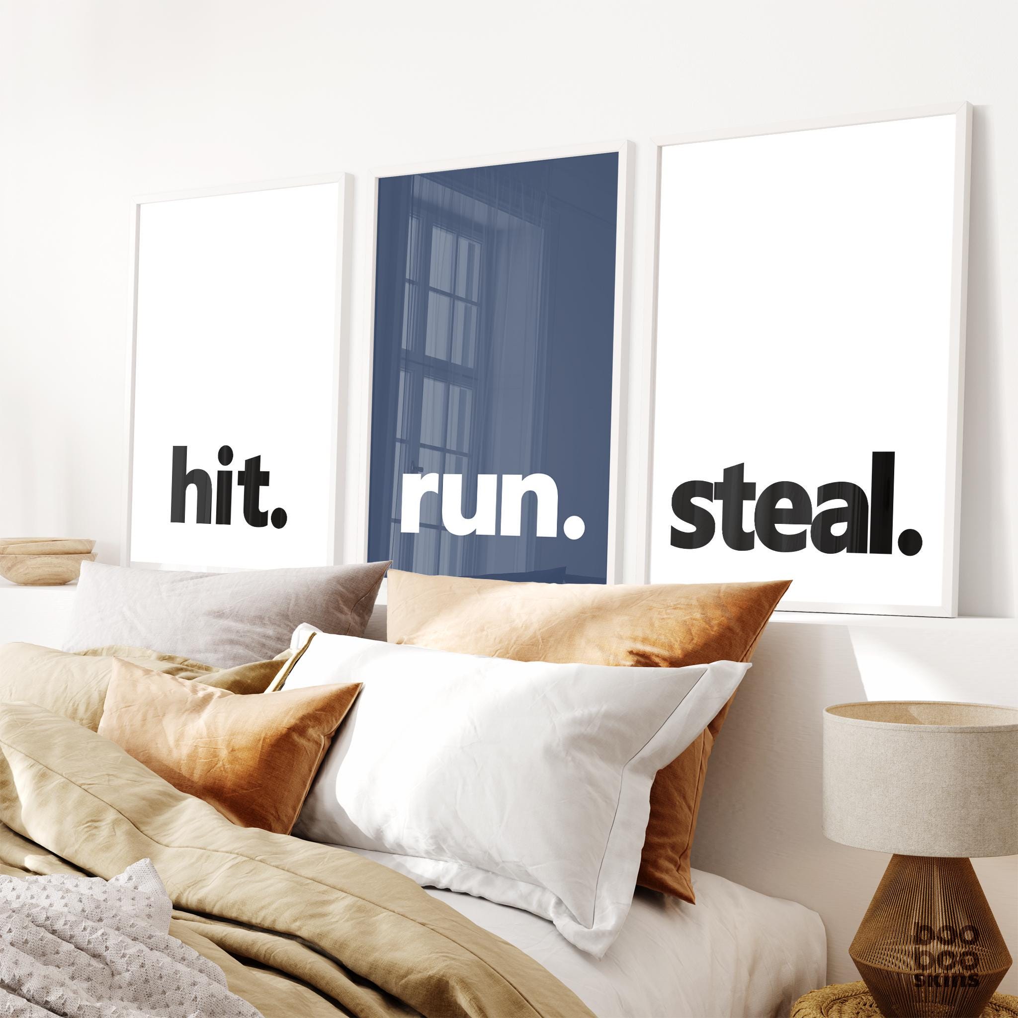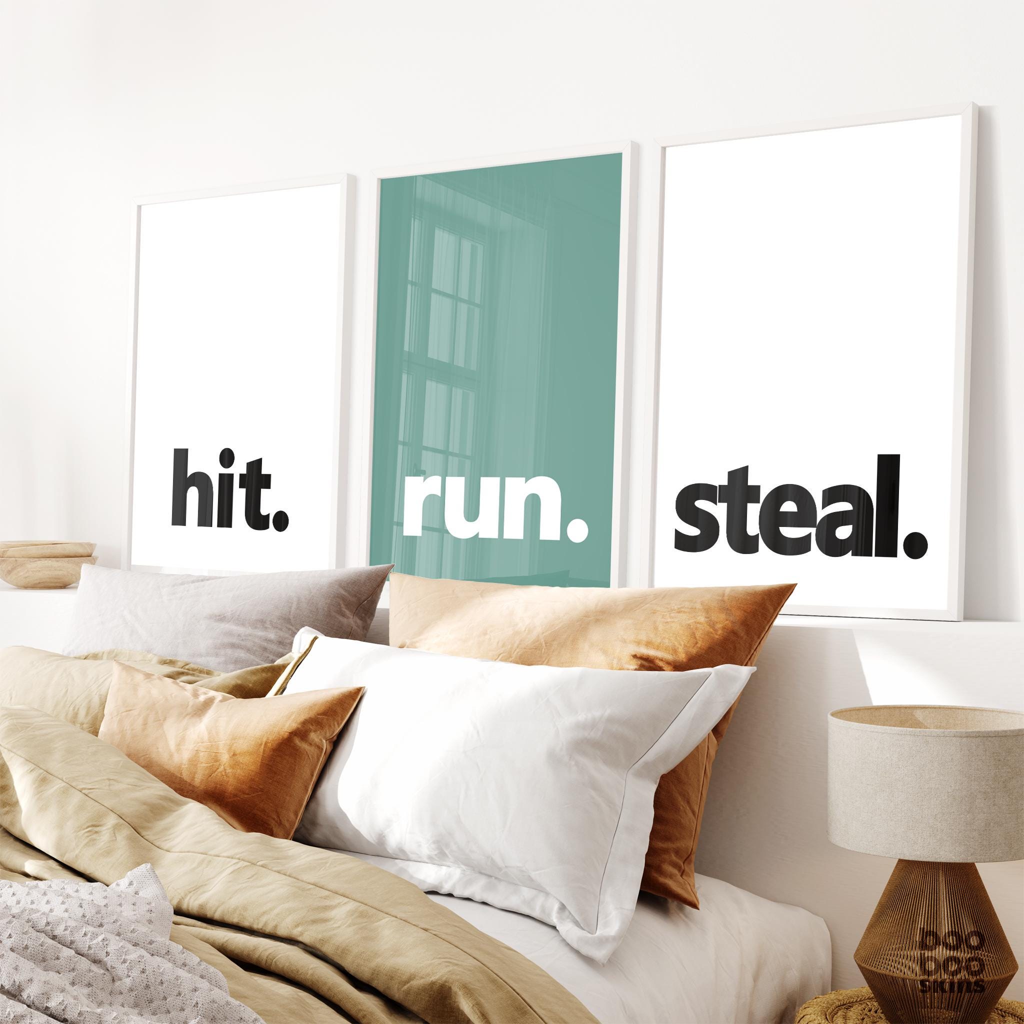 Simple, bold prints for baseball fans. This set of three prints will look great in your teen or tween’s bedroom room as he transitions to more big boy décor. Lots of colours to choose from.